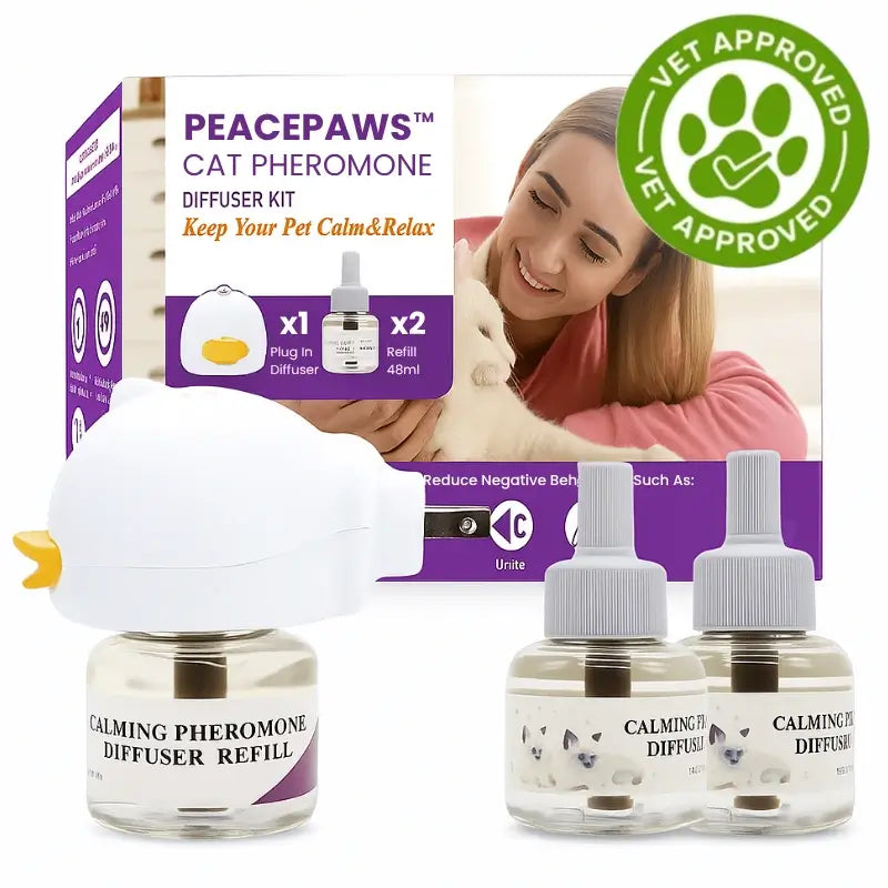 Most products use single pheromones or artificial ingredients that provide temporary relief at best. PeacePaws uses veterinary-grade concentration - the same professional strength that animal clinics rely on for anxious cats. This isn't a pet store spray or basic diffuser; it's the formula vets trust when they need guaranteed results for severely stressed animals.